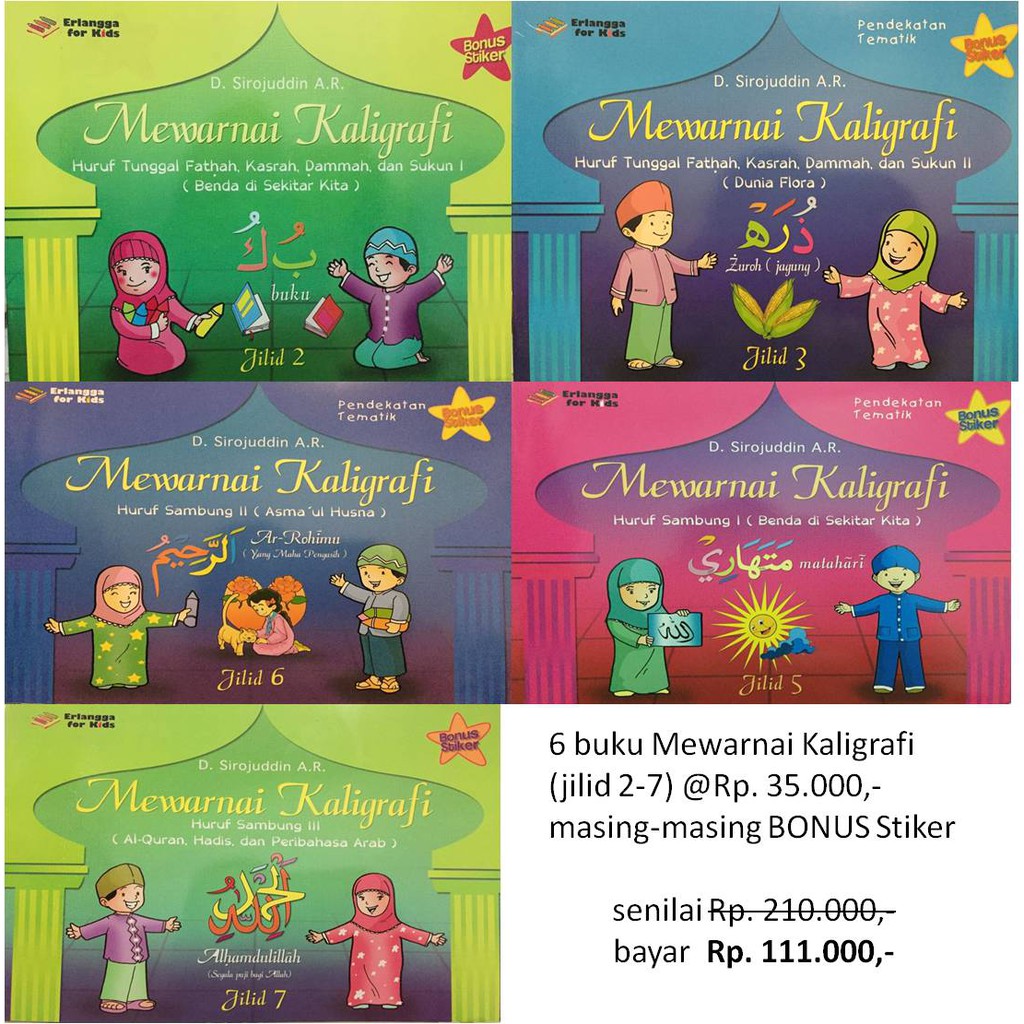 Paket Bundling 6pcs Buku Mewarnai Kaligrafi untuk Anak Sumber : shopee.co.id